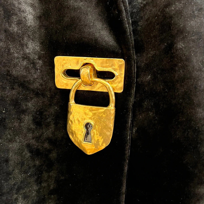 • Gold-tone front clasp as a bold statement detail