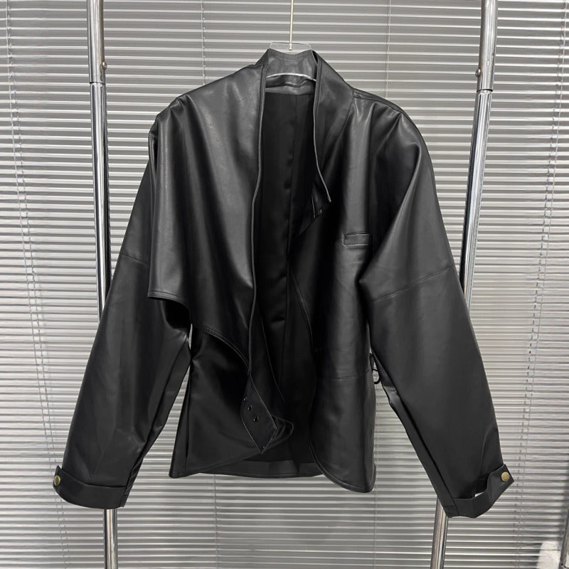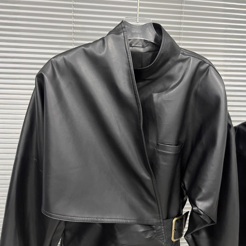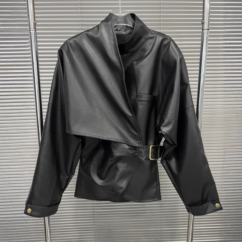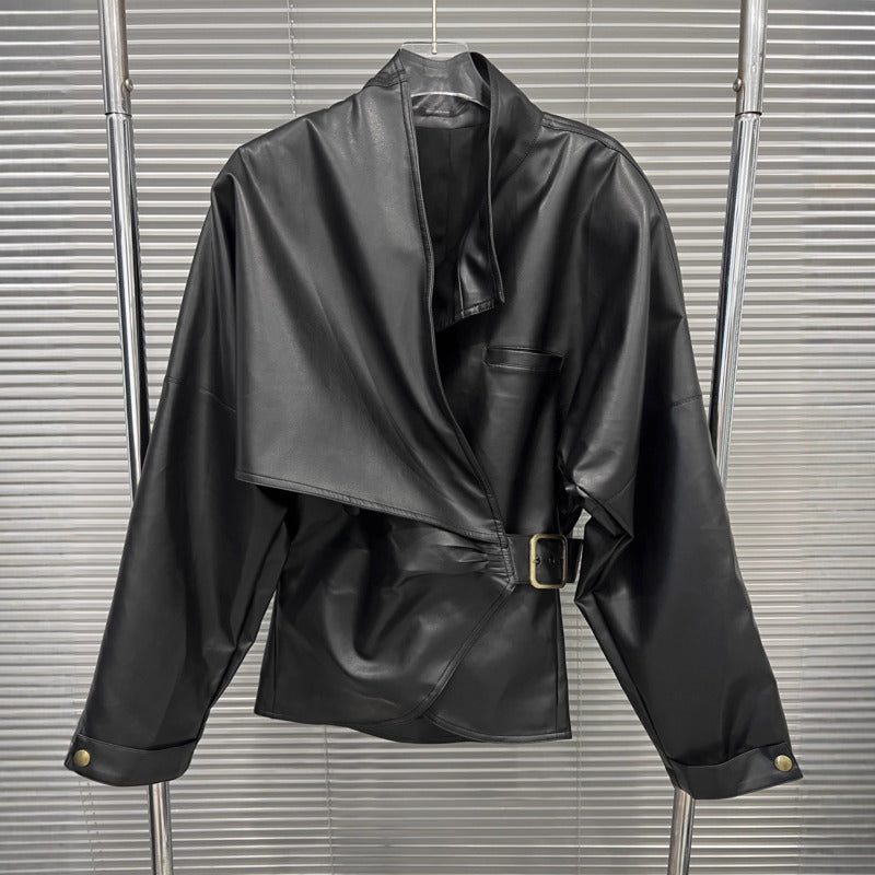 Designed for women who embrace contemporary elegance and effortless authority, this jacket delivers a refined silhouette with a fashion-forward edge. The asymmetrical wrap design naturally draws the eye, creating a confident and distinctive presence