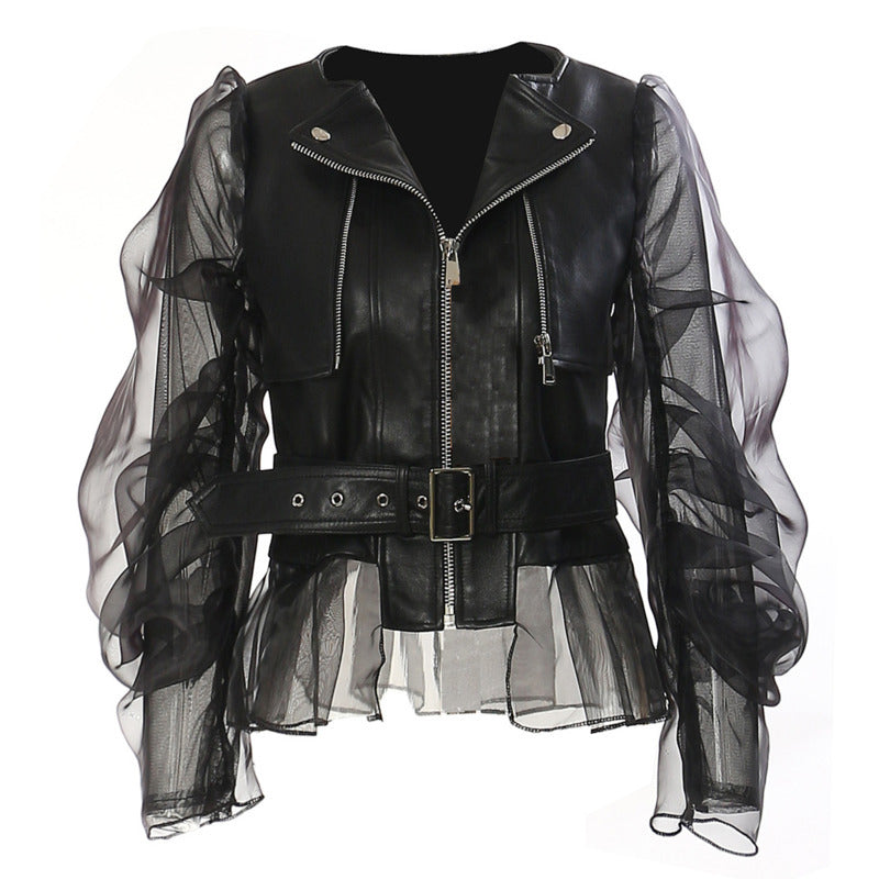 This jacket instantly communicates bold femininity and modern edge, creating a silhouette that feels powerful yet refined. The structured body combined with sheer organza sleeves delivers a striking contrast that naturally draws attention.