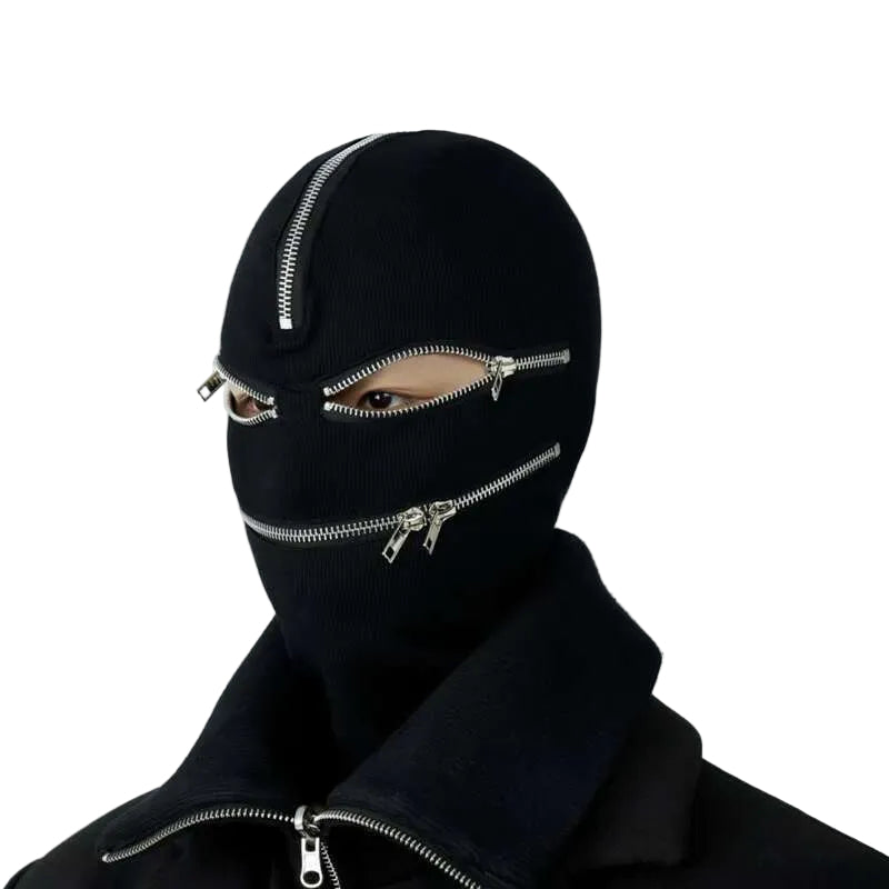 Crafted from a soft stretch knit fabric with precision metal zipper accents, the Cyberpunk Sci-Fi Mask adapts naturally to the face for a secure, comfortable fit. Adjustable openings enhance breathability and vision, turning design elements into functional everyday wear.