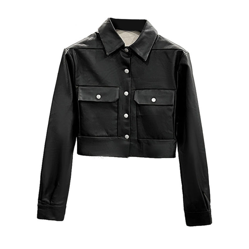 PU Leather Jacket For Women Black | Chic Cropped Style – Cyber Techwear Ir directamente al contenido