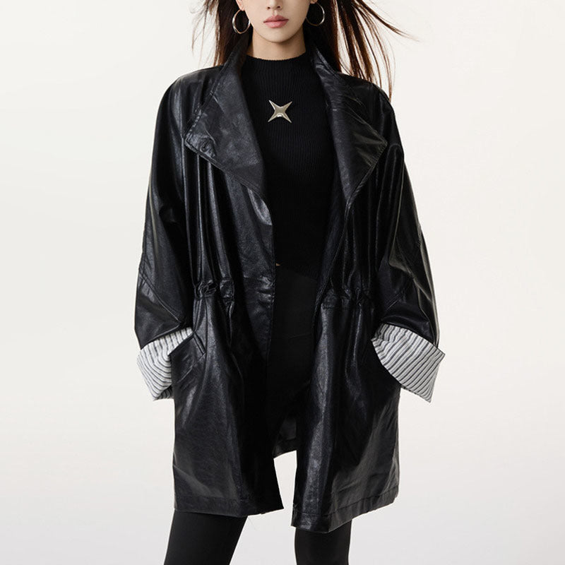 Crafted from high-quality faux PU leather, it offers the sleek appearance of leather with lightweight comfort and easy care. The deep black finish enhances versatility, making it ideal for everyday wear or elevated street-style looks.
