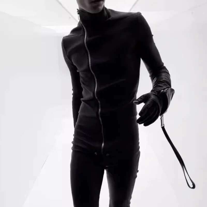The stand collar design frames the neckline with a bold, minimalist attitude, while the full-length front zipper allows you to adjust your look instantly. Every line is engineered to contour the body and create a sleek, sculpted effect.