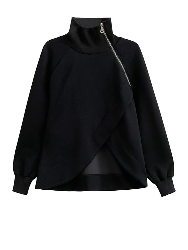 Crafted from thick structured fabric, this sweatshirt holds its shape beautifully while keeping you comfortably insulated. The diagonal metal zipper detail adds subtle contrast and elevates the minimalist aesthetic.