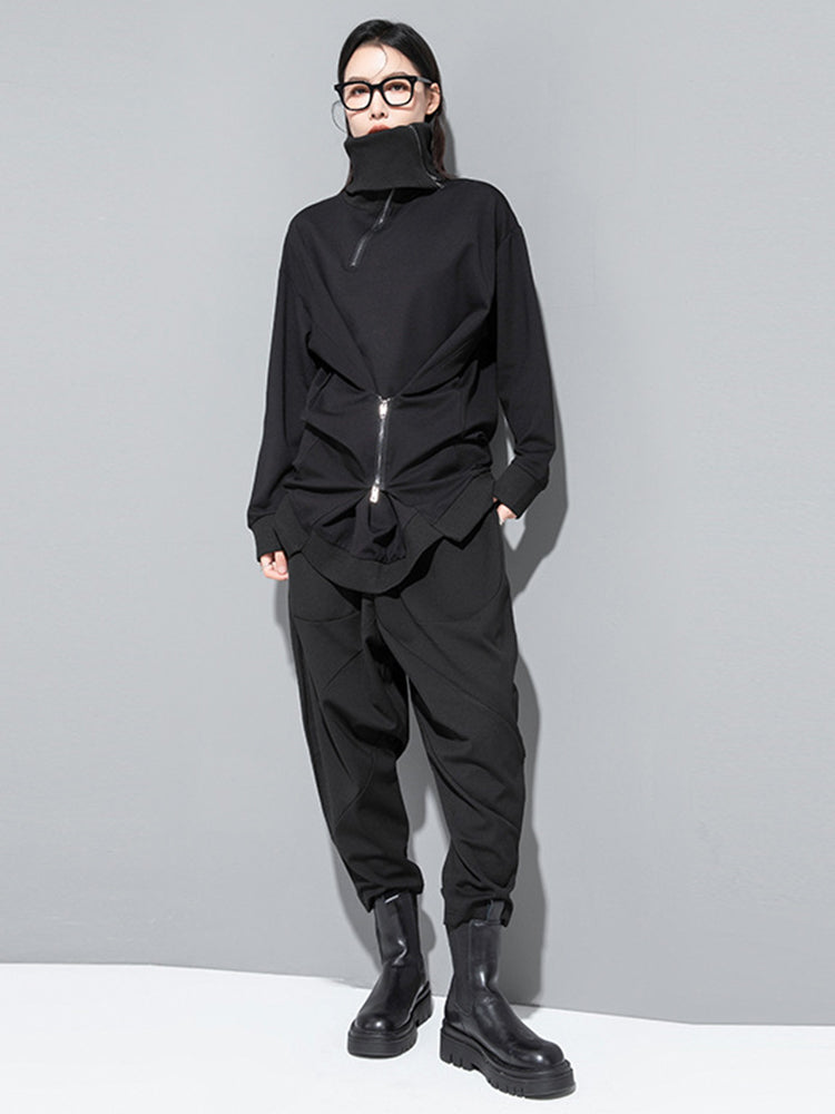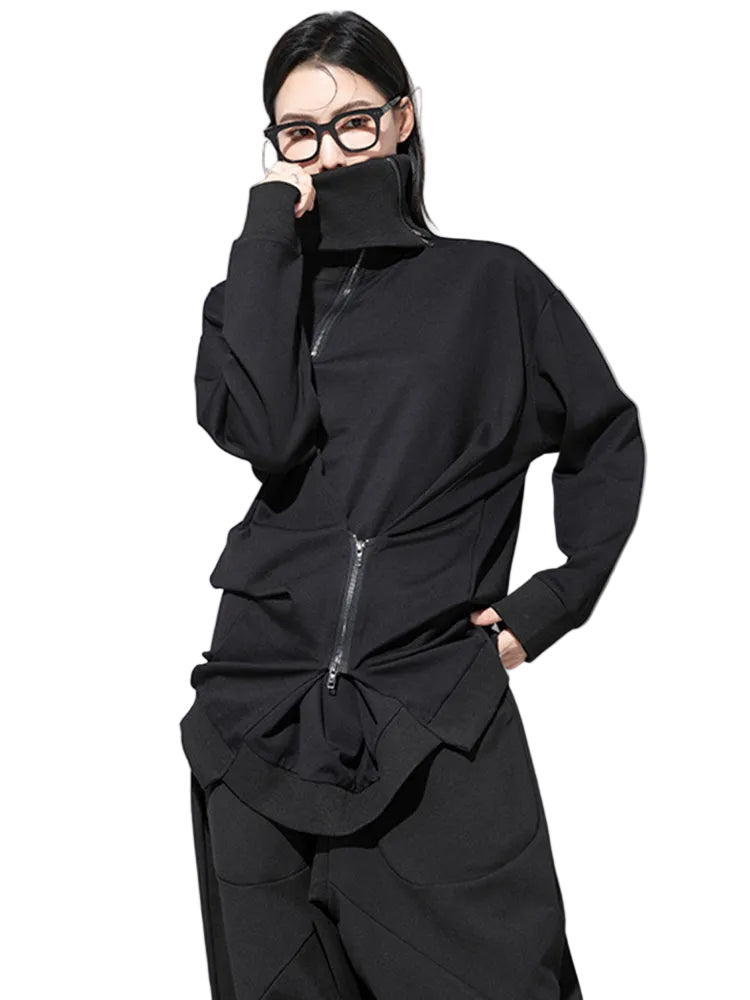 Step into modern confidence with the Womens Zipper Sweatshirts, designed for women who love a minimalist black aesthetic with bold detail. The asymmetric neckline and statement zip instantly create a contemporary streetwear silhouette that feels powerful yet refined..
