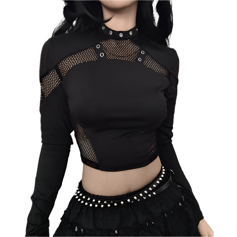 Transforma tu estilo con nuestro top negro gótico con parches de rejilla . Este top combina el estilo gótico vanguardista con la moda contemporánea, convirtiéndolo en una prenda imprescindible para quienes buscan un estilo atrevido. Los parches de rejilla y la decoración calada le dan un toque de elegancia atrevida. 🖤✨
