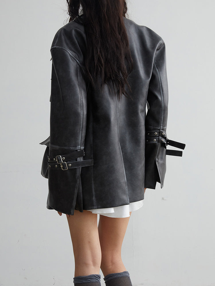 Diseñada para mujeres que apuestan por la moda con estilo, esta chaqueta presenta un acabado de cuero sintético negro intenso con una textura desgastada natural que le aporta carácter y profundidad. El resultado es una prenda exterior impactante que realza al instante tanto conjuntos minimalistas como vanguardistas.