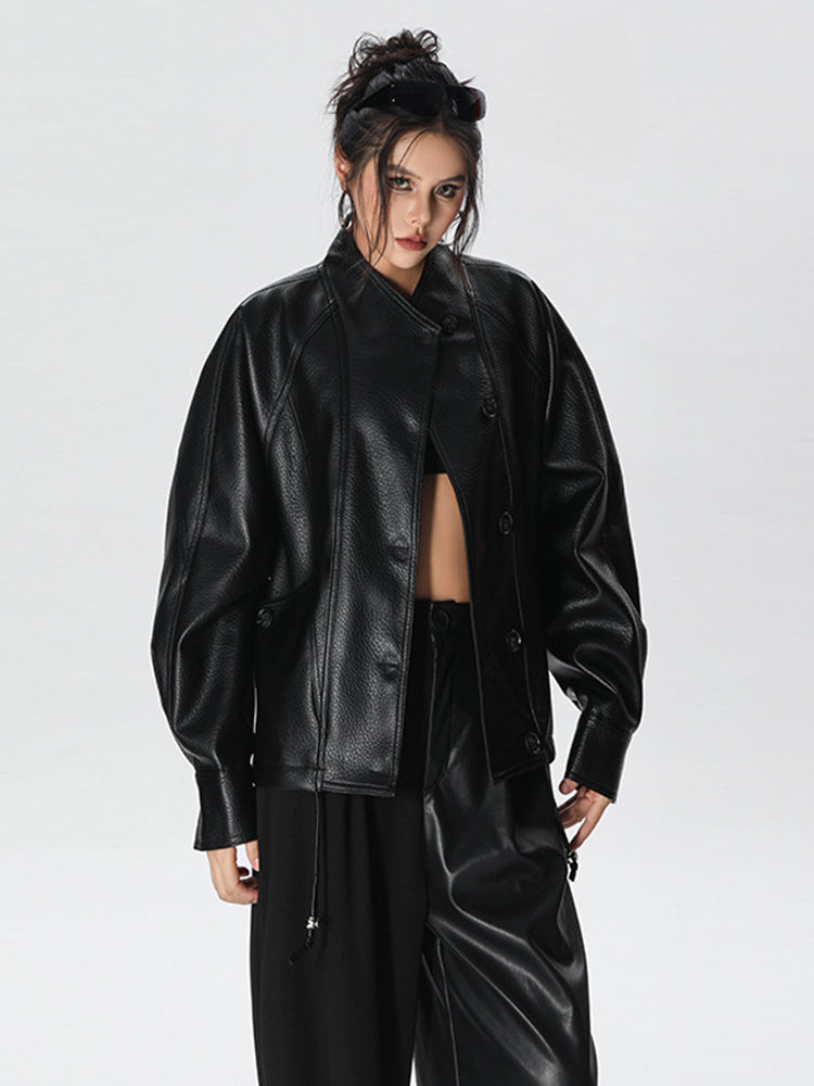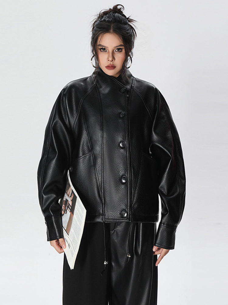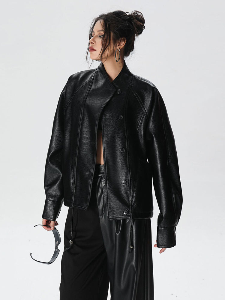 Chaqueta de cuero PU negra para mujer