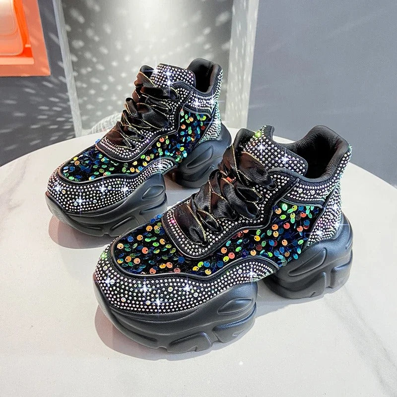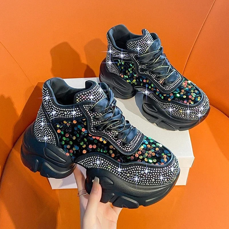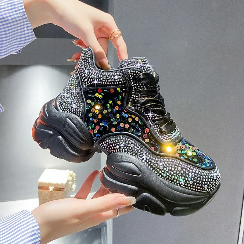 Ressentez l'excitation en enfilant les baskets à plateforme Air Mesh Sequin . Ce ne sont pas que des chaussures, c'est un billet pour un monde où chaque trottoir devient une piste d'atterrissage. Les paillettes étincelantes attirent la lumière et le regard des spectateurs, reflétant votre audace et votre sens du spectacle.