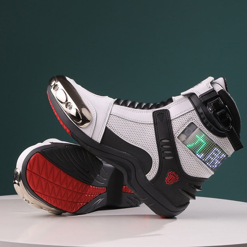 Découvrez un mélange de mode et de fonctionnalité avec ces bottes montantes pour hommes, qui sont non seulement parfaites pour afficher un style urbain, mais font également office de bottes de moto professionnelles. Le design à lacets ajoute une touche vintage à son look futuriste, tandis que la plateforme résistante à l'usure assure que vos pieds restent confortables et soutenus.