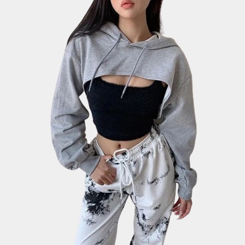 Imaginez un sweat à capuche qui passe sans problème du jour à la nuit, des sorties décontractées aux occasions plus habillées. Le sweat à capuche court gris est exactement cela. Sa teinte grise polyvalente se marie parfaitement avec n'importe quelle palette de couleurs, tandis que la silhouette courte ajoute une touche moderne à votre ensemble. Que vous l'associiez à un jean taille haute ou à une jupe élégante, ce sweat à capuche est votre choix idéal pour faire sensation.