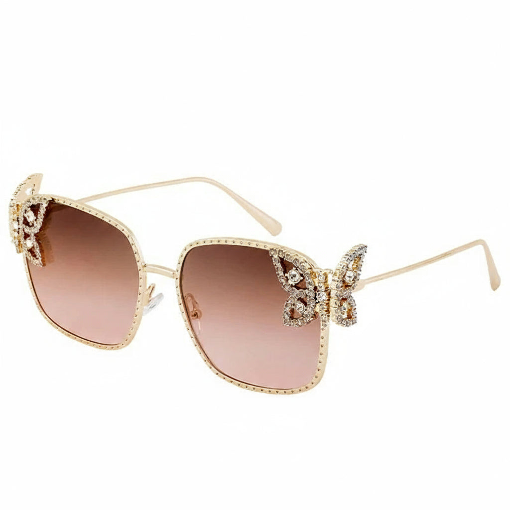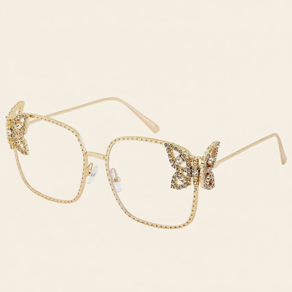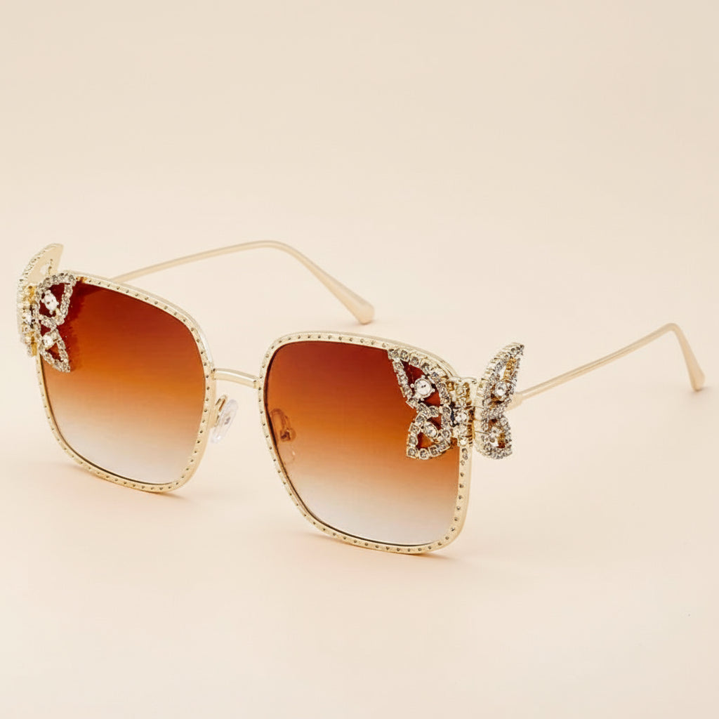 Les strass en forme de papillon qui ornent chaque verre scintillent avec précision, ajoutant une touche de sophistication qui capte la lumière et tous les regards. Associés à des montures carrées oversize et à des accents métalliques , ils créent un mélange irrésistible de charme et d'audace.
