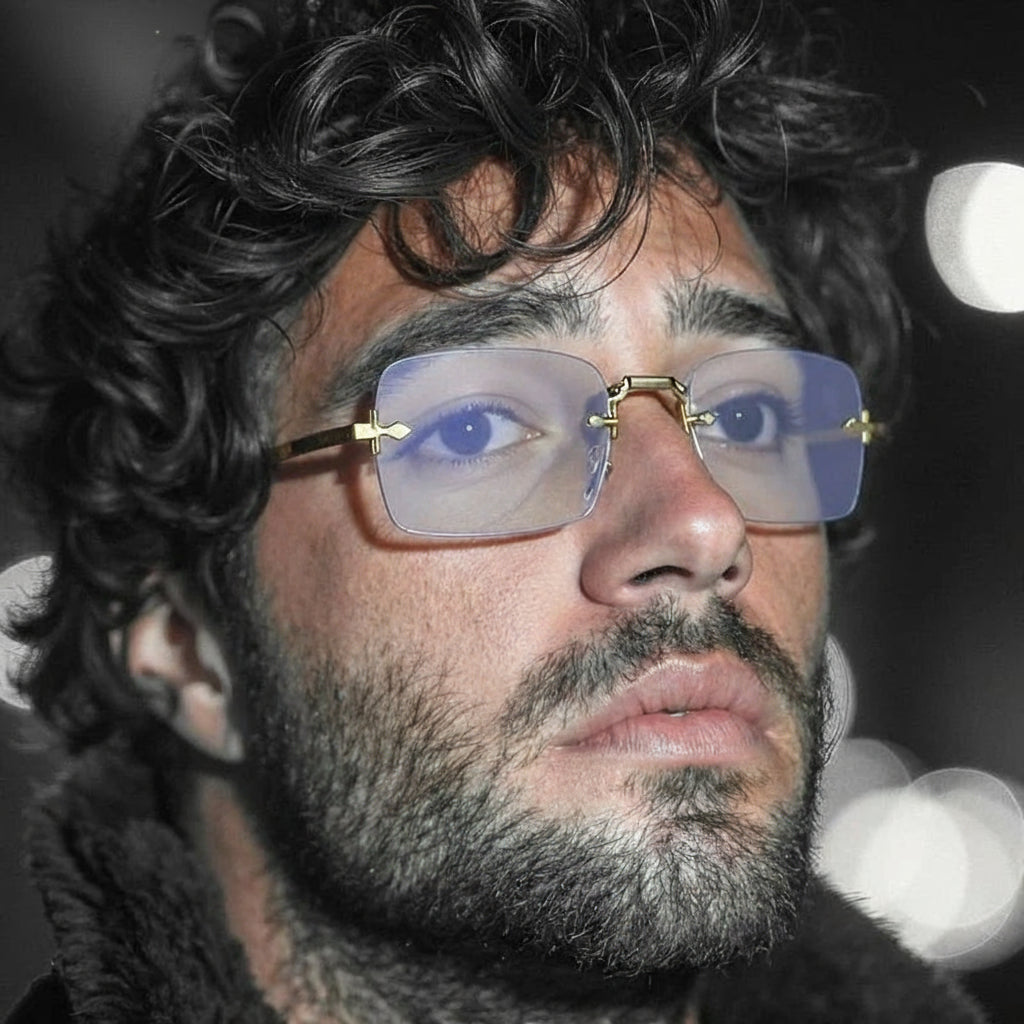 Leurs verres rectangulaires sans monture et leurs branches métalliques créent une parfaite harmonie entre innovation et luxe. De jour comme de nuit, ces lunettes de soleil affichent une allure de rébellion raffinée , conçues pour attirer les regards et affirmer une présence imposante.