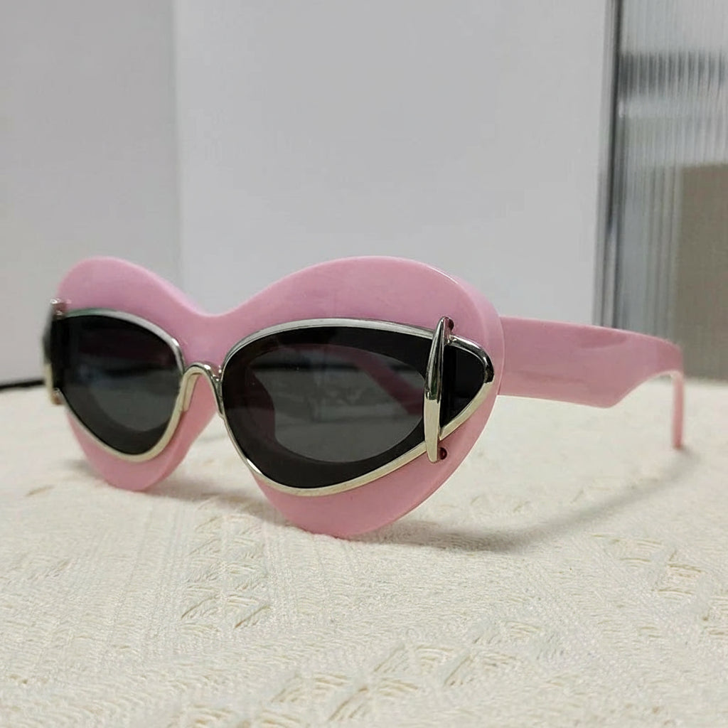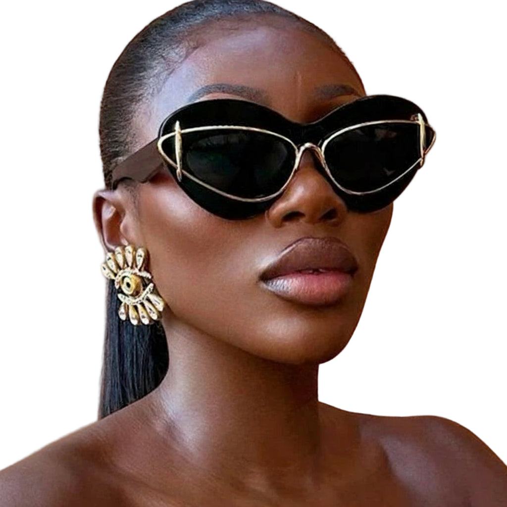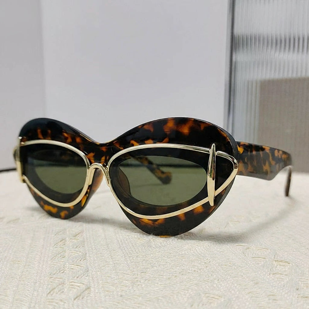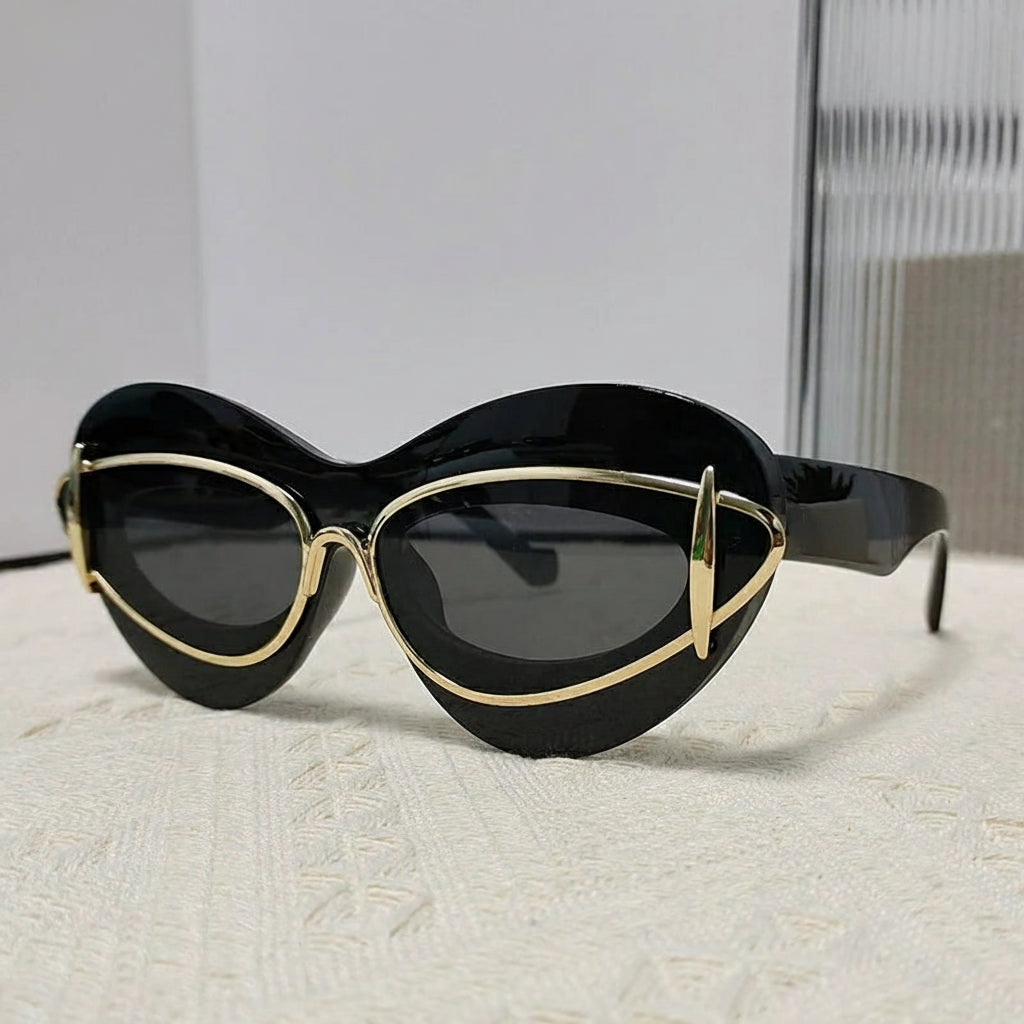 La structure à double monture et les détails dorés confèrent à ces lunettes de soleil une allure sculpturale unique, alliant élégance et puissance en toute subtilité. Que vous flâniez en ville ou que vous complétiez une tenue audacieuse, ces lunettes apportent la touche de luxe futuriste que vous attendiez.