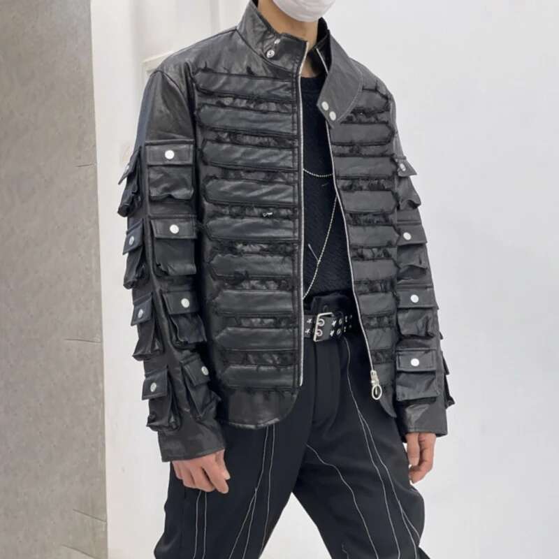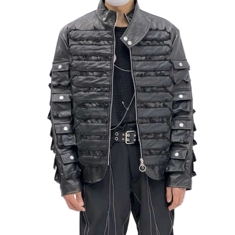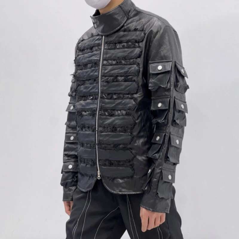 Affirmez votre individualité avec la veste gothique cyberpunk faite main : une véritable ode au futurisme sombre et au savoir-faire artisanal . Chaque détail est soigneusement pensé pour incarner confiance, audace et une expression de soi unique.