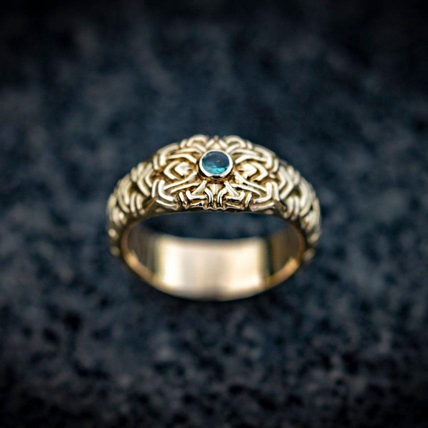 La bague en or 14 carats est un véritable chef-d'œuvre, fabriqué à la main avec précision et passion par Trillobeat , un artiste inspiré par la connaissance sacrée des cultures anciennes et la beauté majestueuse de la nature.