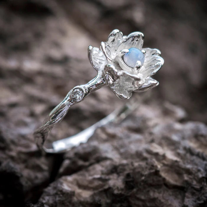 La fleur de lotus, qui surgit de l'eau avec ses pétales délicats et son centre de pierres précieuses étincelantes , représente le voyage de l'âme vers l'éveil spirituel. Disponible dans une variété de pierres précieuses , telles que des saphirs bleu profond et des émeraudes vibrantes , cette bague peut être personnalisée pour refléter votre chemin spirituel unique.