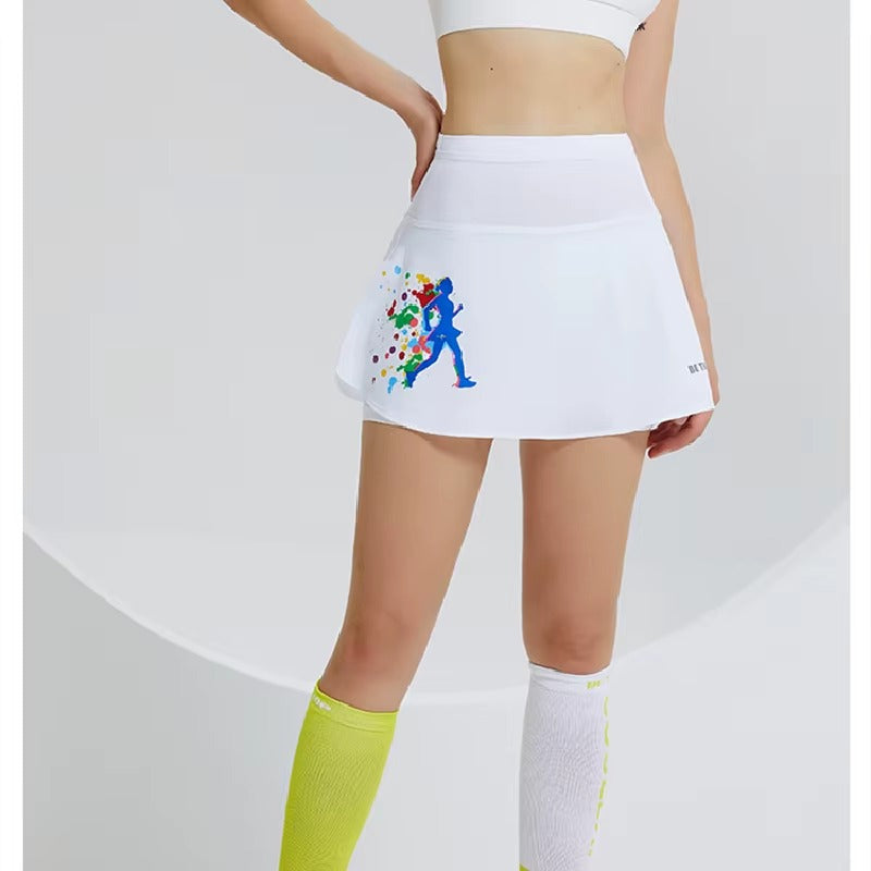 Confectionnée dans un tissu léger et respirant , la jupe-short d'entraînement athlétique noire offre un confort optimal et un maintien parfait . Son motif de coureur dynamique ajoute une touche de couleur motivante qui se démarque à chaque pas.