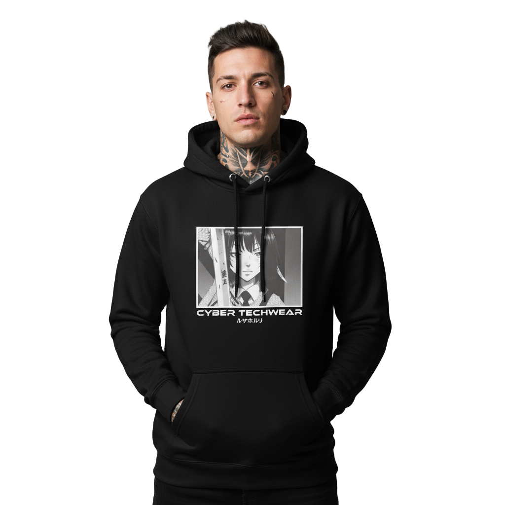 Découvrez le sweat à capuche Anime Cyberpunk - le moyen idéal de montrer votre amour pour l'anime japonais et la culture cyberpunk avec style ! Conçu par la célèbre marque Cybertechwear, ce sweat à capuche arbore une illustration unique et exclusive d'une jeune femme issue d'une série animée populaire.