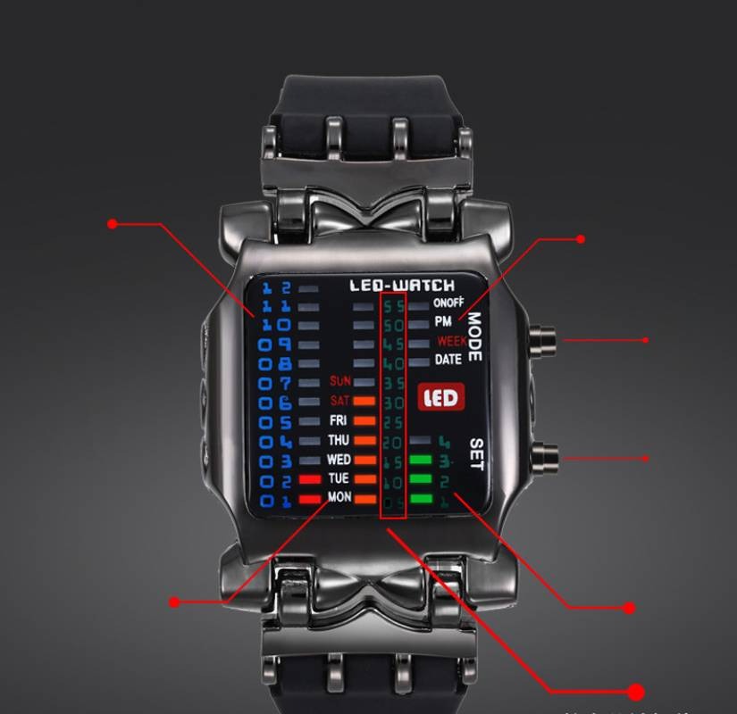 La montre LED Cyberpunk est une montre pas comme les autres. Entrez dans le futur avec son design métallique élégant et son écran LED avancé. Le cadran de la montre s'illumine d'une lueur brillante et futuriste, ce qui en fait l'accessoire parfait pour les personnes férus de technologie. Le bracelet réglable en acier inoxydable est confortable à porter et ajoute une touche de sophistication supplémentaire. Que vous exploriez le monde virtuel ou que vous naviguiez dans le monde réel, la montre LED Cyberpunk est là pour vous. Adoptez l'esthétique néon et faites une déclaration où que vous alliez avec cet accessoire de pointe.