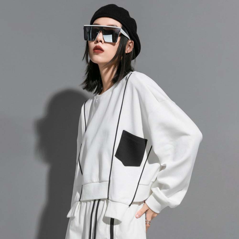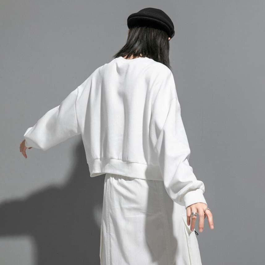 Restez tendance et à l'aise avec notre nouveau sweat-shirt Techwear blanc pour femme. Ce sweat-shirt ample présente un ourlet irrégulier, un col rond et des manches longues, ce qui en fait le complément parfait à toute garde-robe. La couleur blanche est polyvalente et facile à associer avec n'importe quel bas, ce qui la rend idéale pour toutes les occasions. Les options de grande taille le rendent parfait pour tous les types de corps, offrant confort et style à chaque femme. L'ourlet irrégulier ajoute une touche unique et avant-gardiste à ce sweat-shirt techwear incontournable. Améliorez votre style et restez tendance avec ce sweat-shirt techwear incontournable.