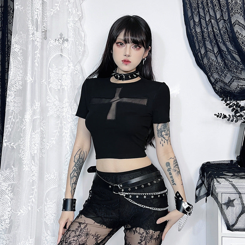 Ce haut noir tendance et streetwear n'est pas seulement un vêtement, c'est le reflet de votre personnalité. Que vous souhaitiez embrasser votre côté gothique ou ajouter une touche avant-gardiste à votre garde-robe, ce haut est le choix parfait pour la femme avant-gardiste. 💀🖤