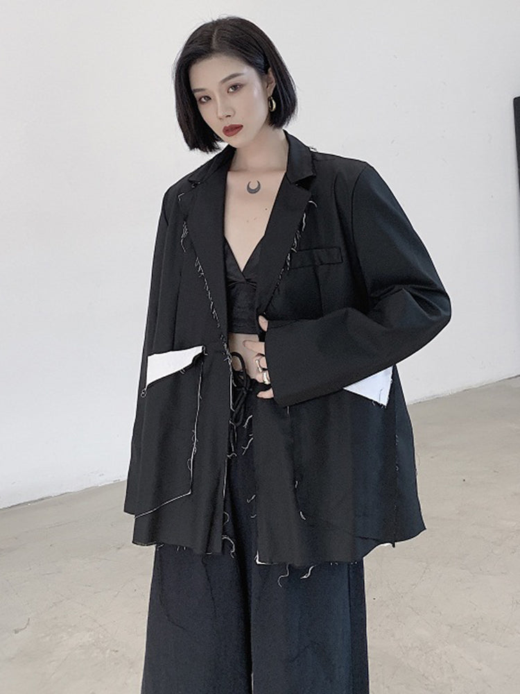 Ce blazer réinvente la coupe classique grâce à une structure noire audacieuse rehaussée de détails artistiques. Conçu pour les femmes qui aiment affirmer leur style, il allie élégance et originalité pour une présence instantanément plus affirmée.