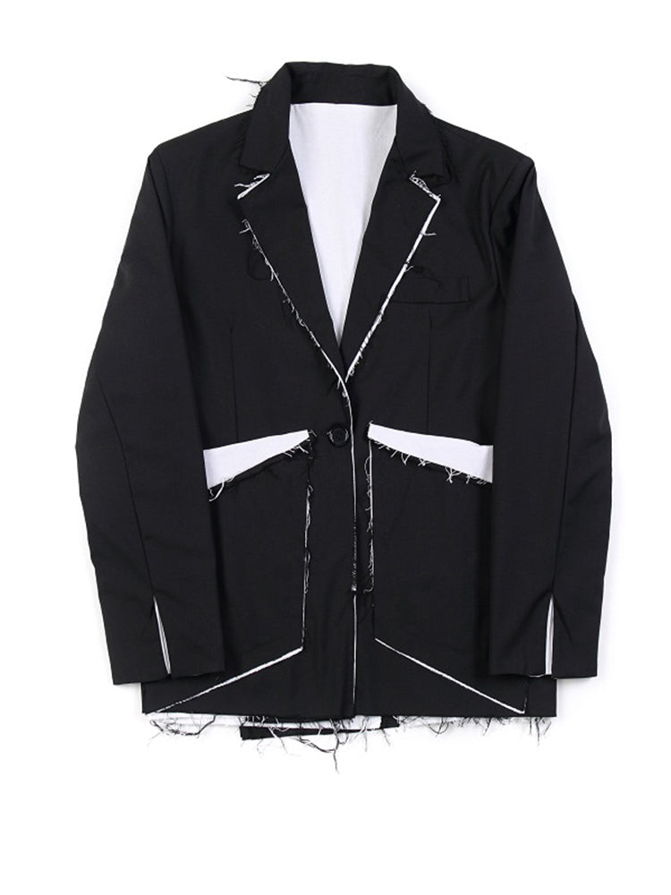 La coupe décontractée de ce blazer permet de superposer les vêtements facilement tout en conservant une silhouette impeccable. Les surpiqûres contrastées à bords francs et les empiècements blancs apportent une touche déstructurée qui transforme une pièce intemporelle en un accessoire résolument moderne.