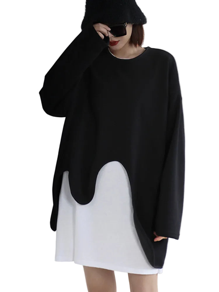 Step into effortless confidence with the Crew Neck Womens Sweatshirts, designed to blend minimalist street style with playful contrast. The sleek black oversized top layer flows over a soft white underlayer effect, creating instant depth and dimension.