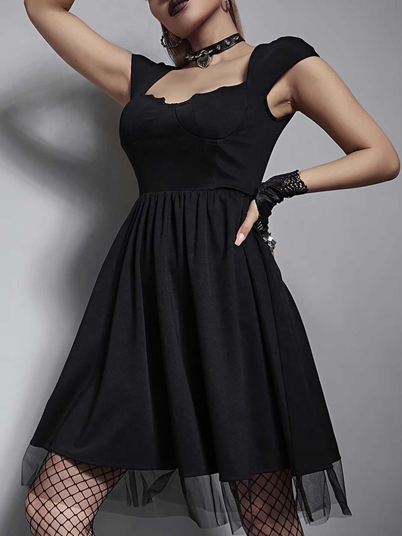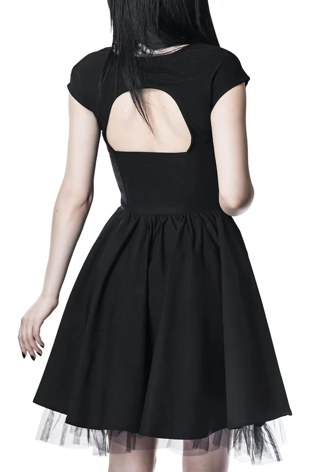 Adoptez un style qui mêle l'élégance gothique à une attitude punk . Cette robe est conçue pour sublimer votre confiance en vous, attirant tous les regards. Son décolleté sculpté et sa coupe fluide créent une silhouette harmonieuse, à la fois affirmée et féminine.