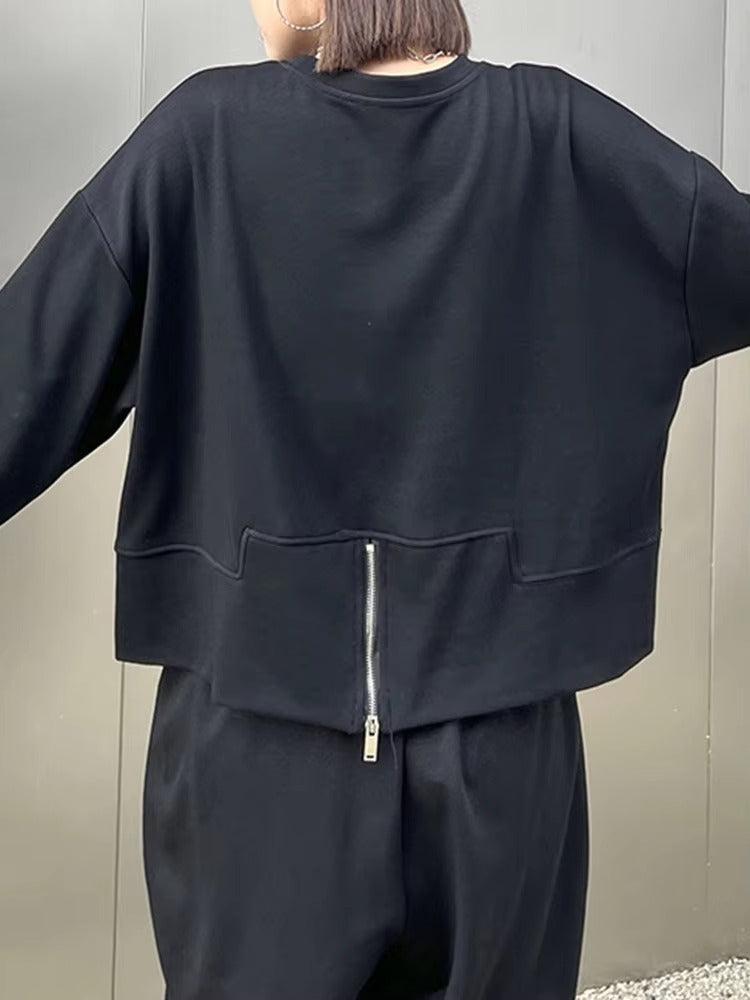 Designed with a relaxed cropped silhouette, this piece flatters your proportions while keeping your style effortlessly cool. The unexpected back zipper detail adds dimension and edge, transforming a simple sweatshirt into a standout essential.