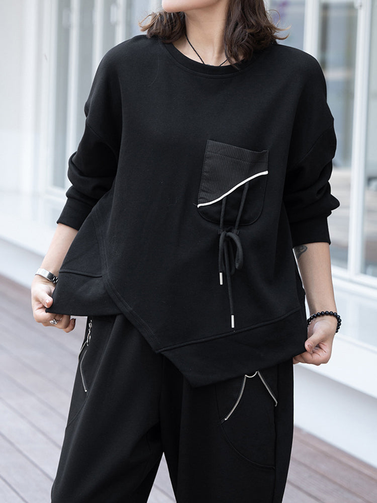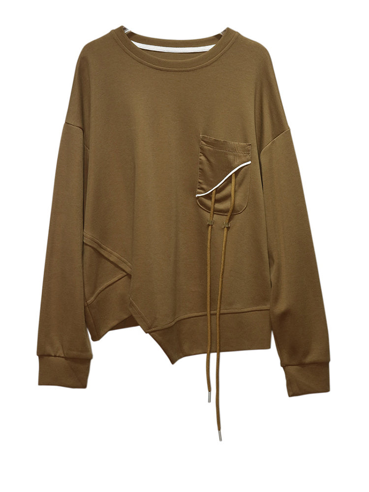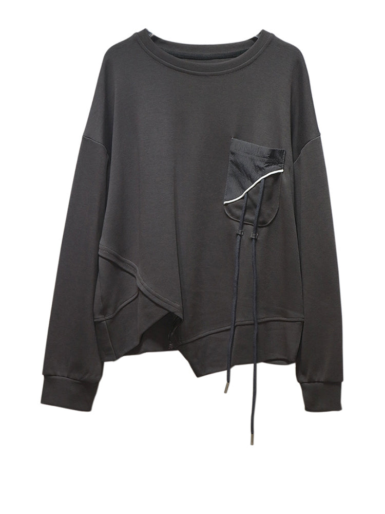 A distinctive contrast pocket detail with subtle drawstring accent adds personality without overpowering the minimalist aesthetic. Finished with a classic crew neckline and clean lines, it becomes a versatile wardrobe essential you can style up or down.