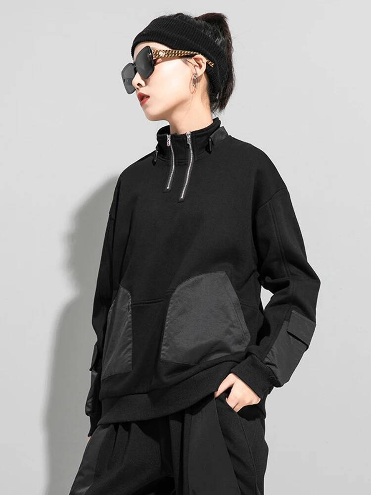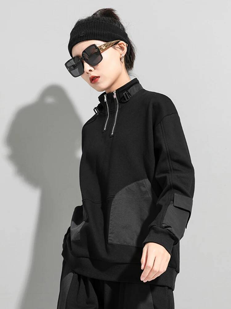 Step into effortless confidence with the Womens Cozy Sweatshirt, crafted for women who love comfort-driven street style. The sleek black finish and high zip mock neckline instantly create a bold, modern silhouette.