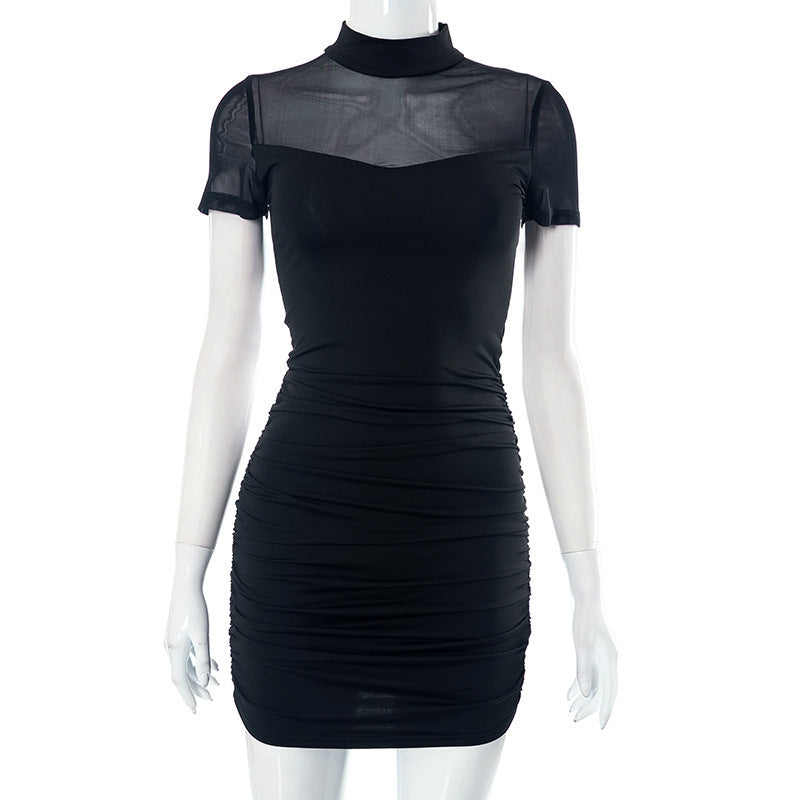 Every movement feels empowering thanks to its body-hugging fit and luxurious softness. The sheer upper section adds a bold touch of mystery, while the short sleeves and flattering length keep the piece versatile and wearable for countless occasions. Whether you're dressing up for a night out or embracing your everyday gothic chic, this dress naturally attracts attention.