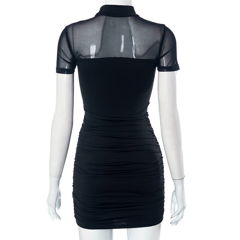 Step into a world where minimalist gothic style meets modern sophistication. This Goth Mini Dress Black is designed to make you feel irresistibly confident, with a silhouette that follows the body beautifully and a neckline that subtly highlights your charm. Its combination of mesh detailing and a smooth black fabric creates an alluring contrast that instantly elevates your look.